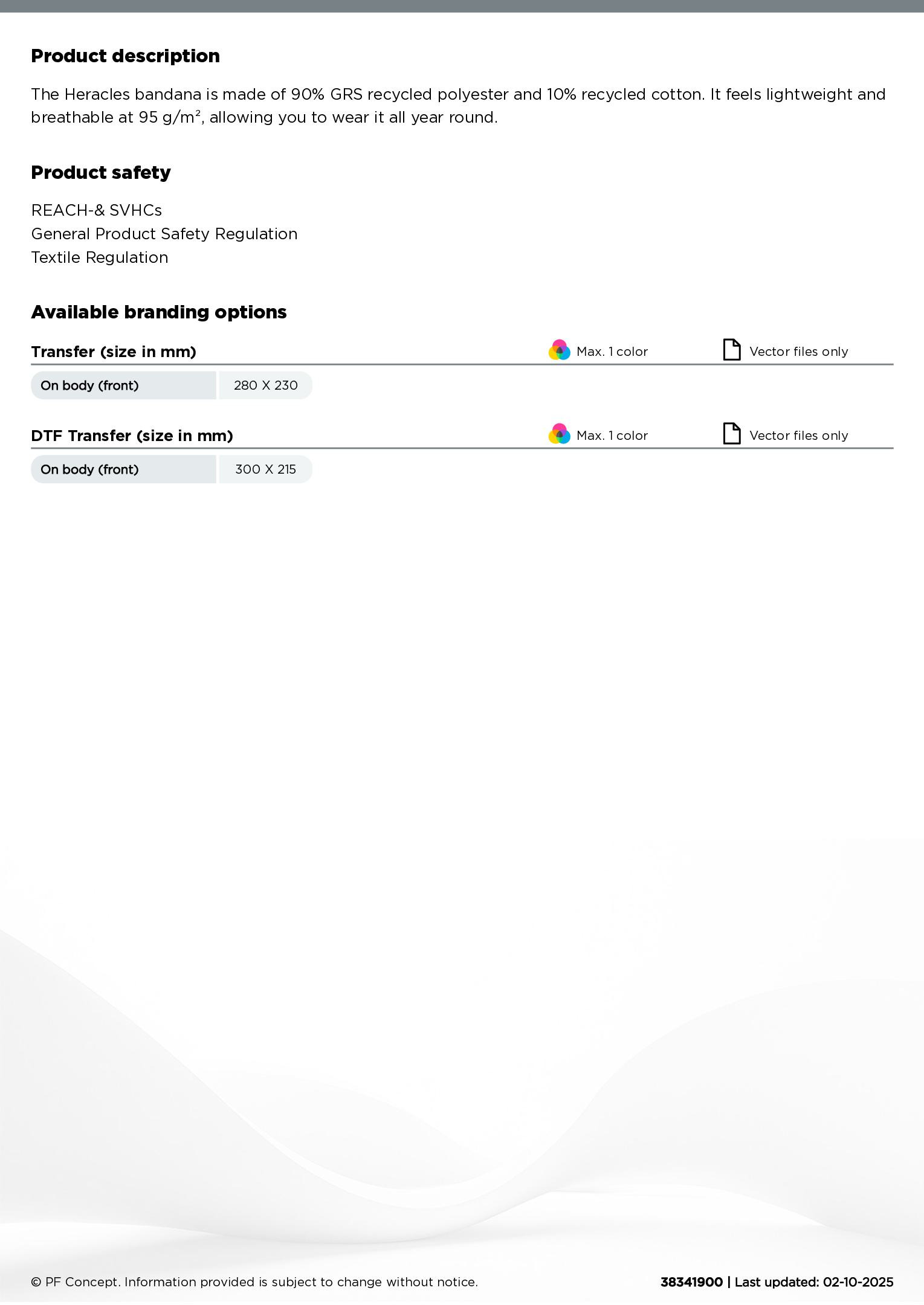Le bandana Héraclès est composé de 90 % de polyester recyclé GRS et de 10 % de coton recyclé. Léger et respirant (95 g/m²), il peut être porté toute l'année. 90% Polyester recyclé certifié GRS et 10% Coton recyclé certifié GRS.