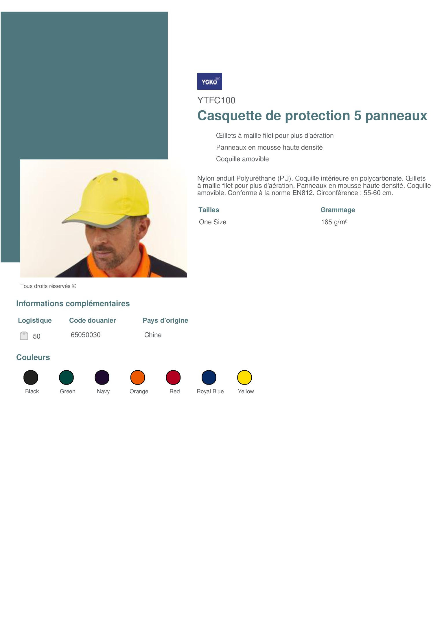 Casquette de protection coquille amovible norme EN812 - YTFC100