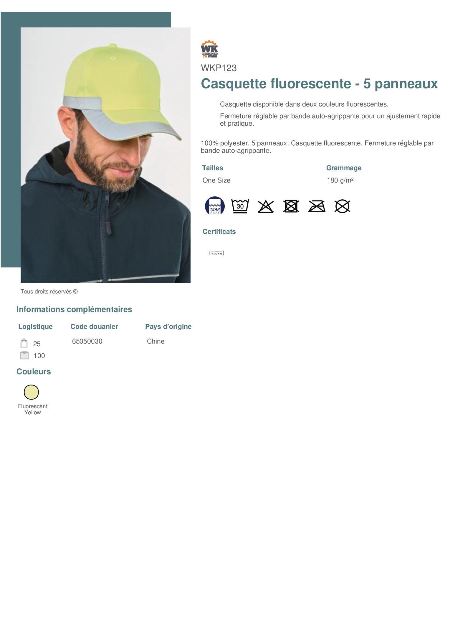 Casquette fluorescente - 5 panneaux - WKP123