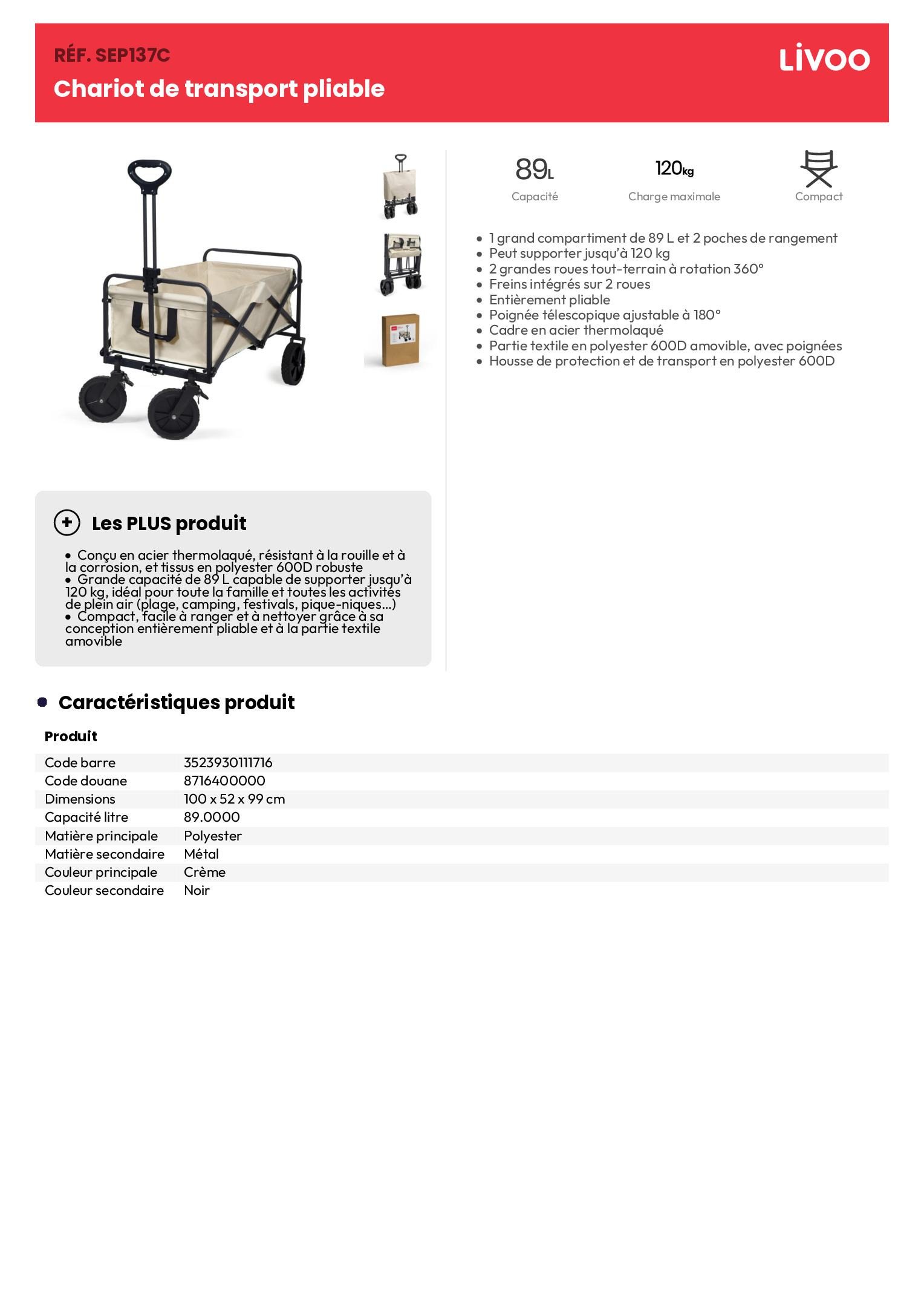 Partie textile en polyester 600D amovible, avec poignées