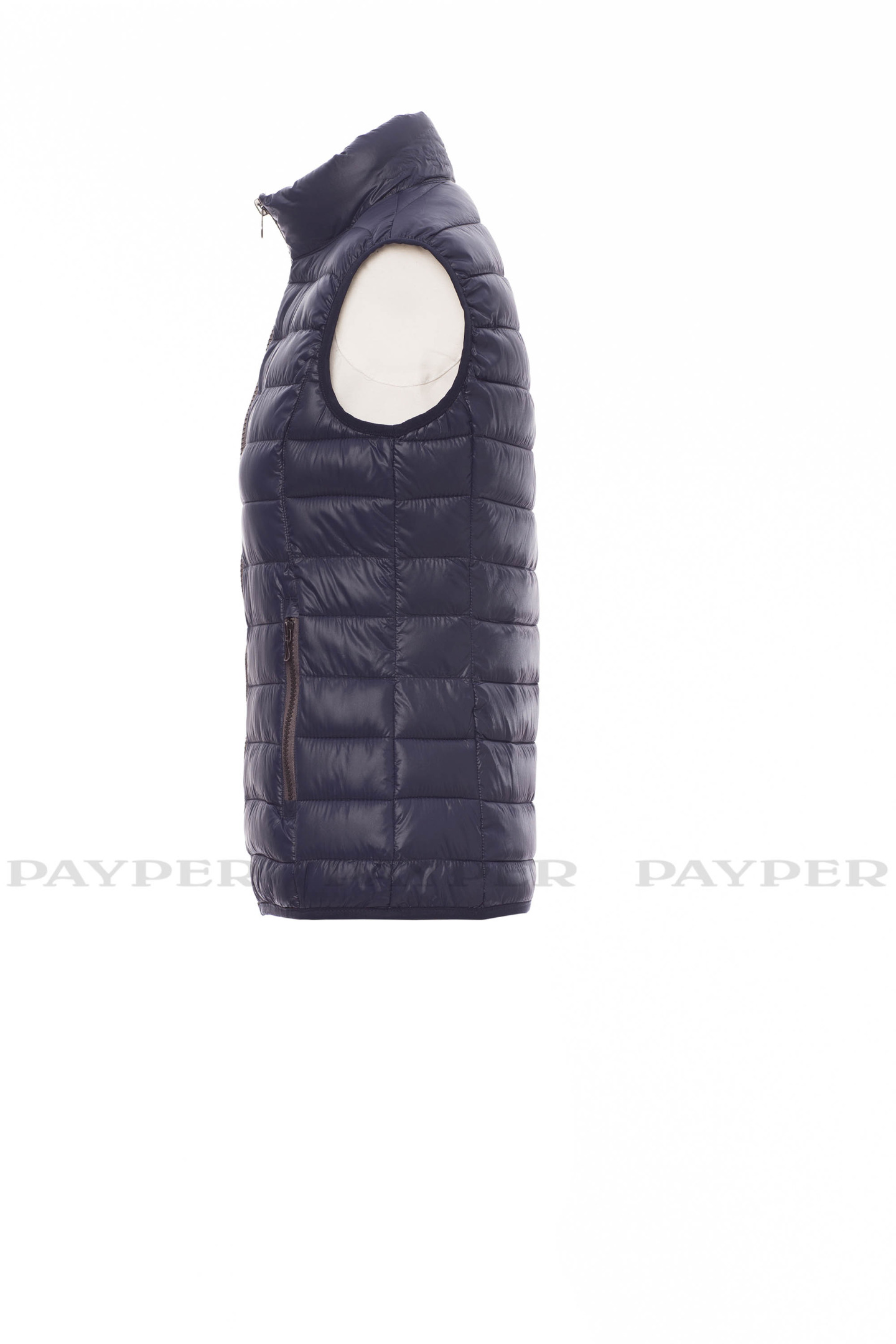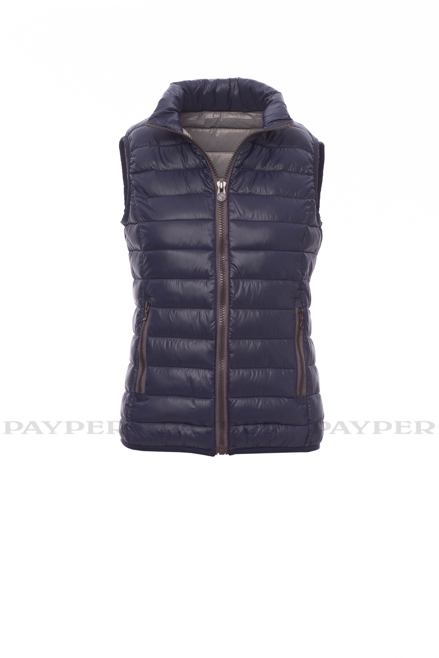 Gilet/doudoune femme, coupe ergonomique, à zip de 8 mm en plastique avec curseur en métal, fin liseré à la taille, deux poches extérieures. Intérieur : rembourrage polyester effet duvet, trois poches.