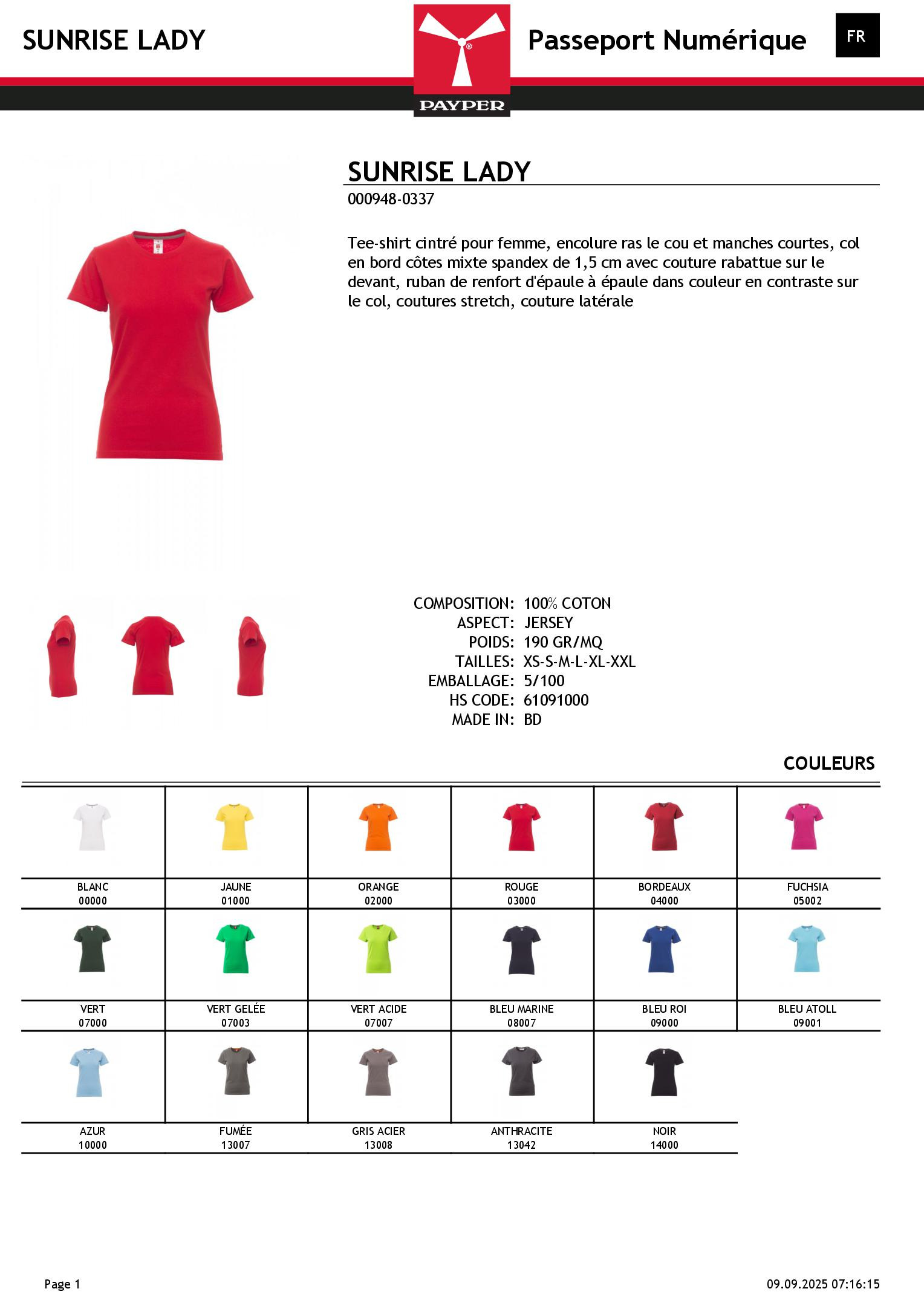Tee-shirt cintré pour femme, encolure ras le cou et manches courtes, col en bord côtes mixte spandex de 1,5 cm avec couture rabattue sur le devant, ruban de renfort d'épaule à épaule dans couleur en contraste sur le col, coutures stretch, couture latérale