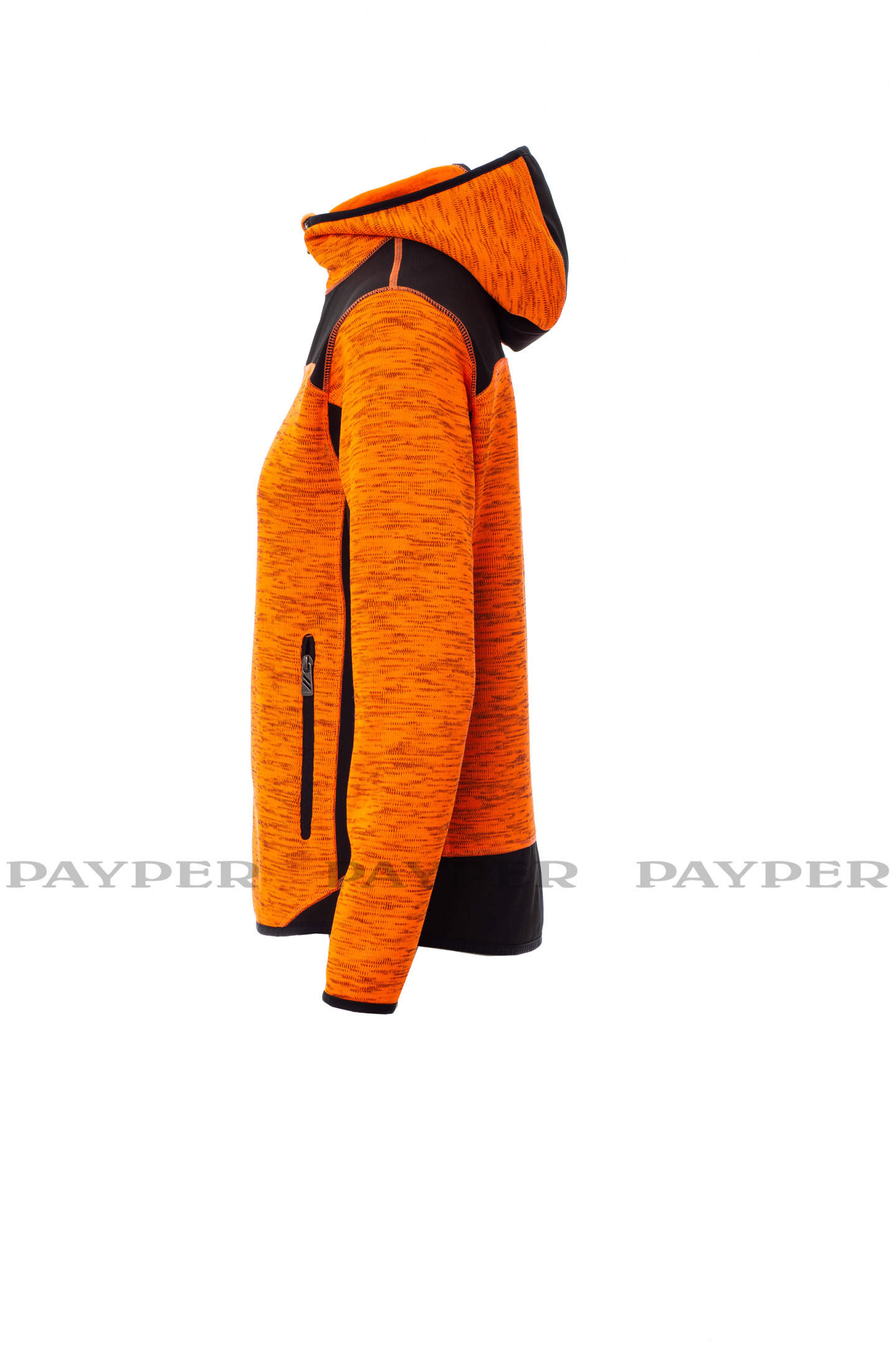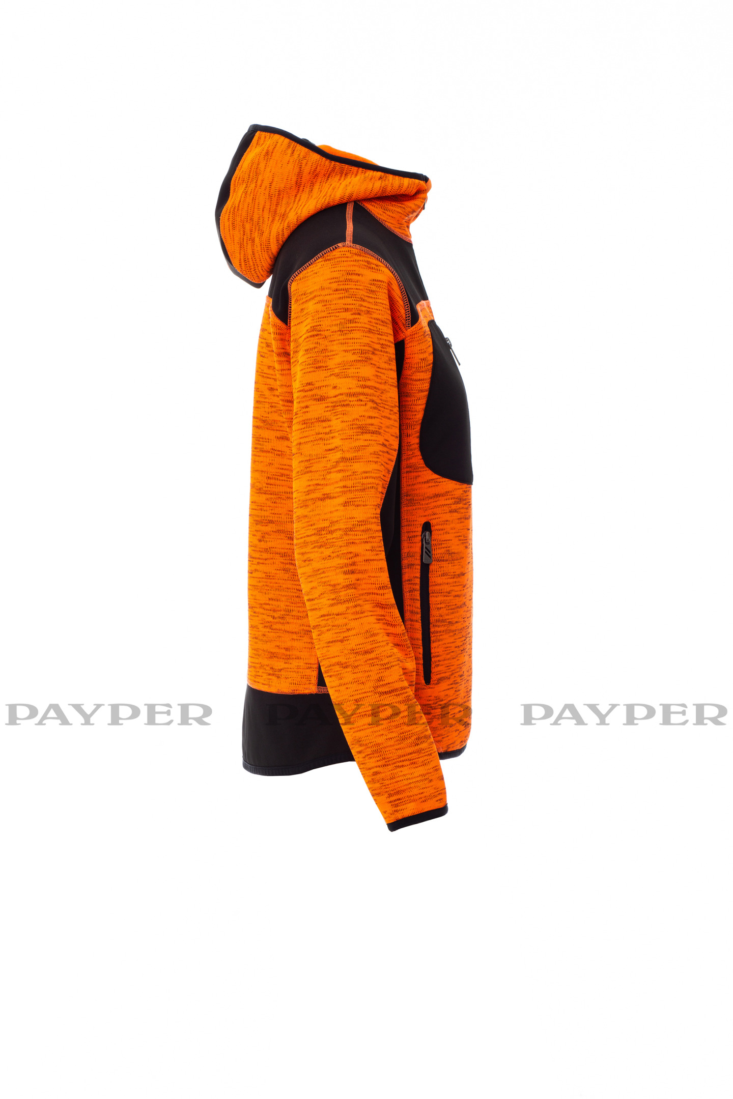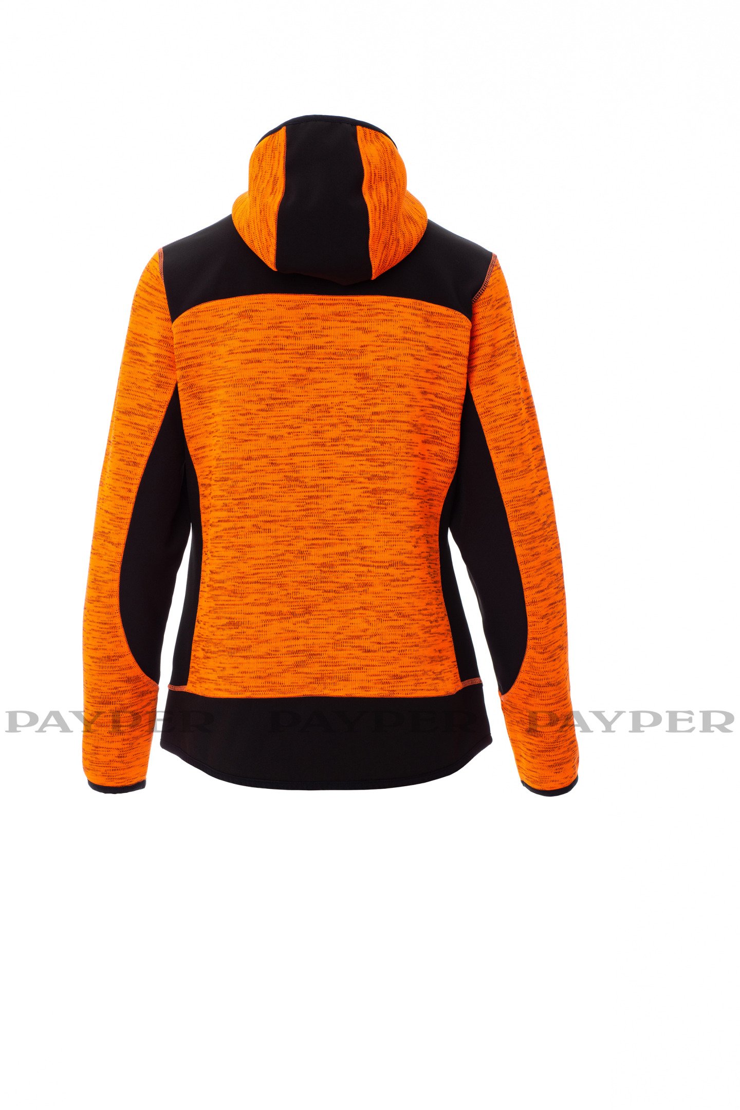 Tricot technique avec inserts en soft-shell noirs, bicolore, zip long SBS avec ruban, capuche profilée avec deux coutures, fin liseré aux poignets et à la taille, deux poches latérales avec zip, une poche poitrine.
