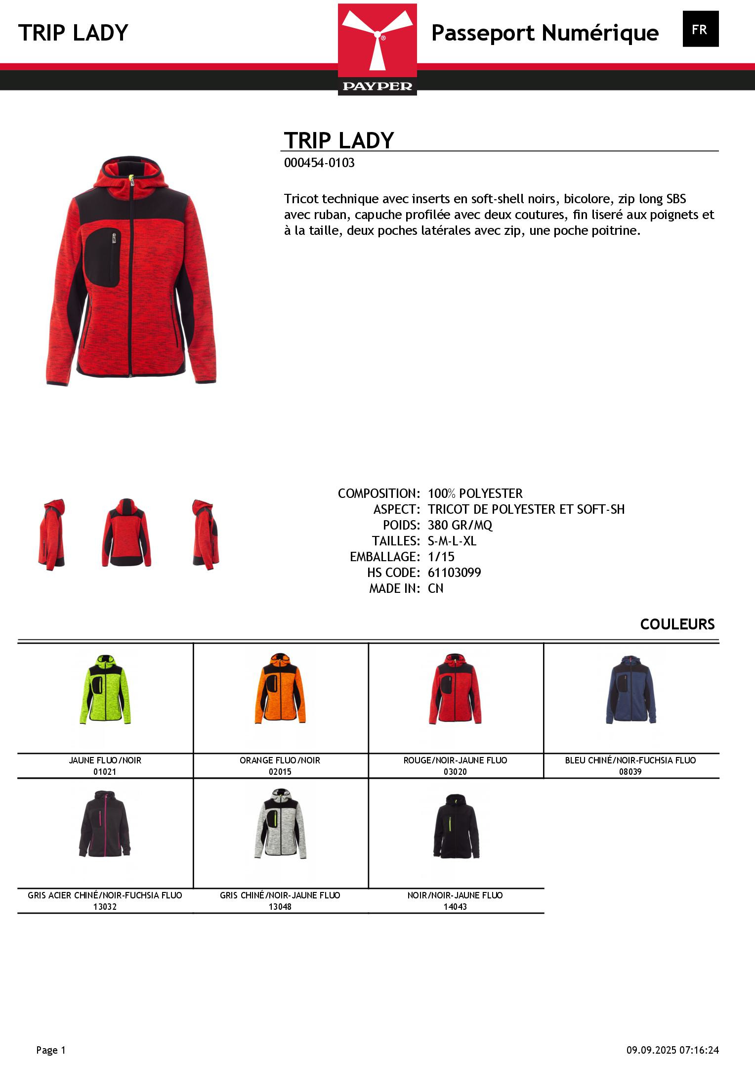 Couleur à définir (voir fiche technique)Tailles à définir (voir fiche technique)Marquage textile