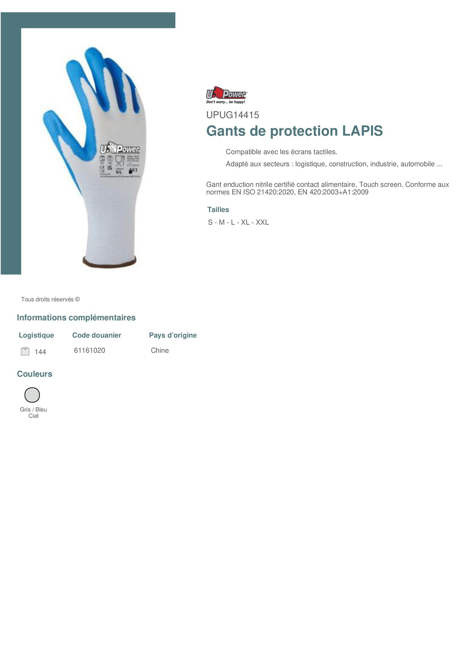 Gant enduction nitrile certifié contact alimentaire, Touch screen. Conforme aux normes EN ISO 21420:2020, EN 420:2003+A1:2009