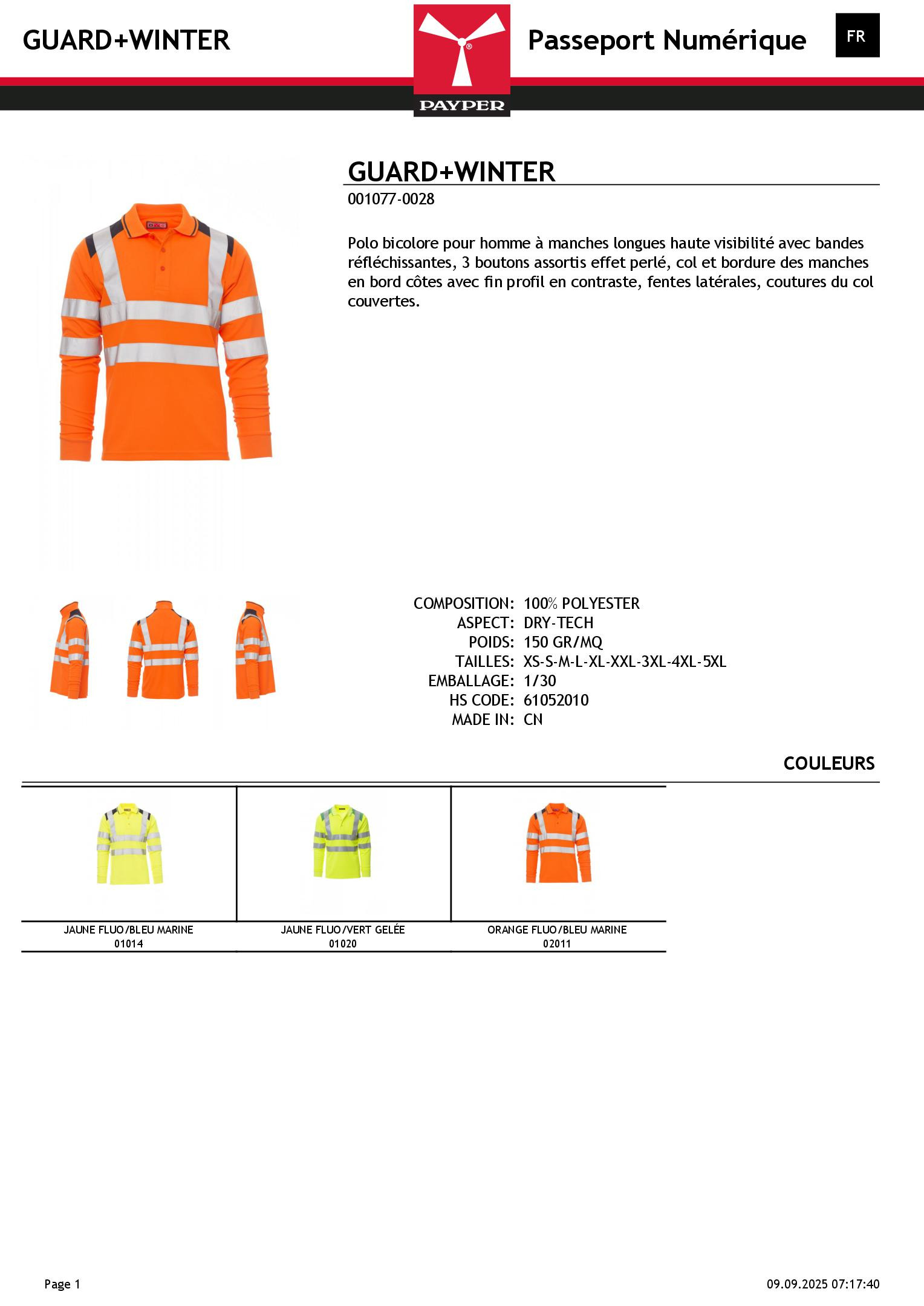 Polo bicolore pour homme à manches longues haute visibilité avec bandes réfléchissantes, 3 boutons assortis effet perlé, col et bordure des manches en bord côtes avec fin profil en contraste, fentes latérales, coutures du col couvertes.