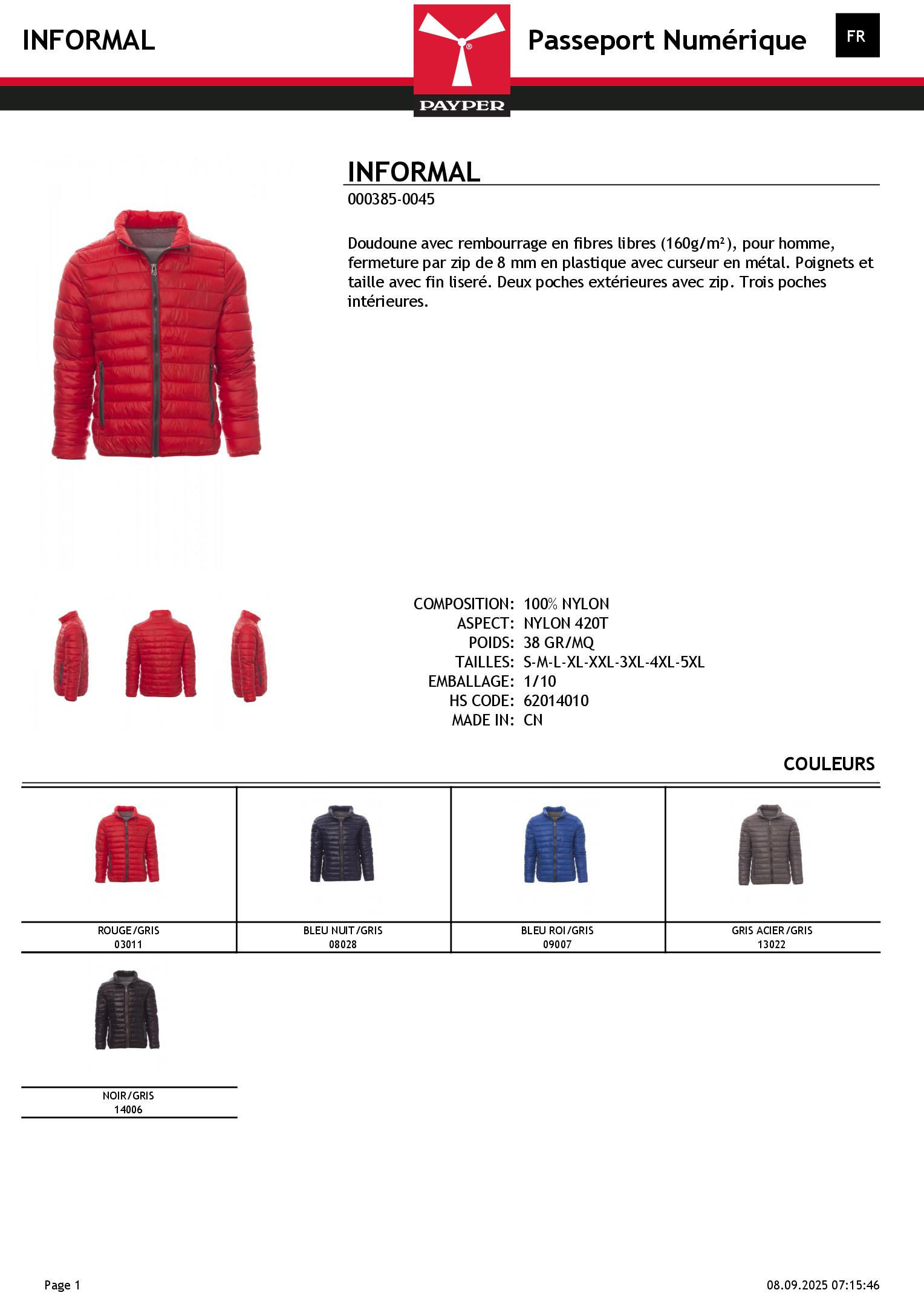 Couleur à définir (voir fiche technique)Tailles à définir (voir fiche technique)Marquage textile
