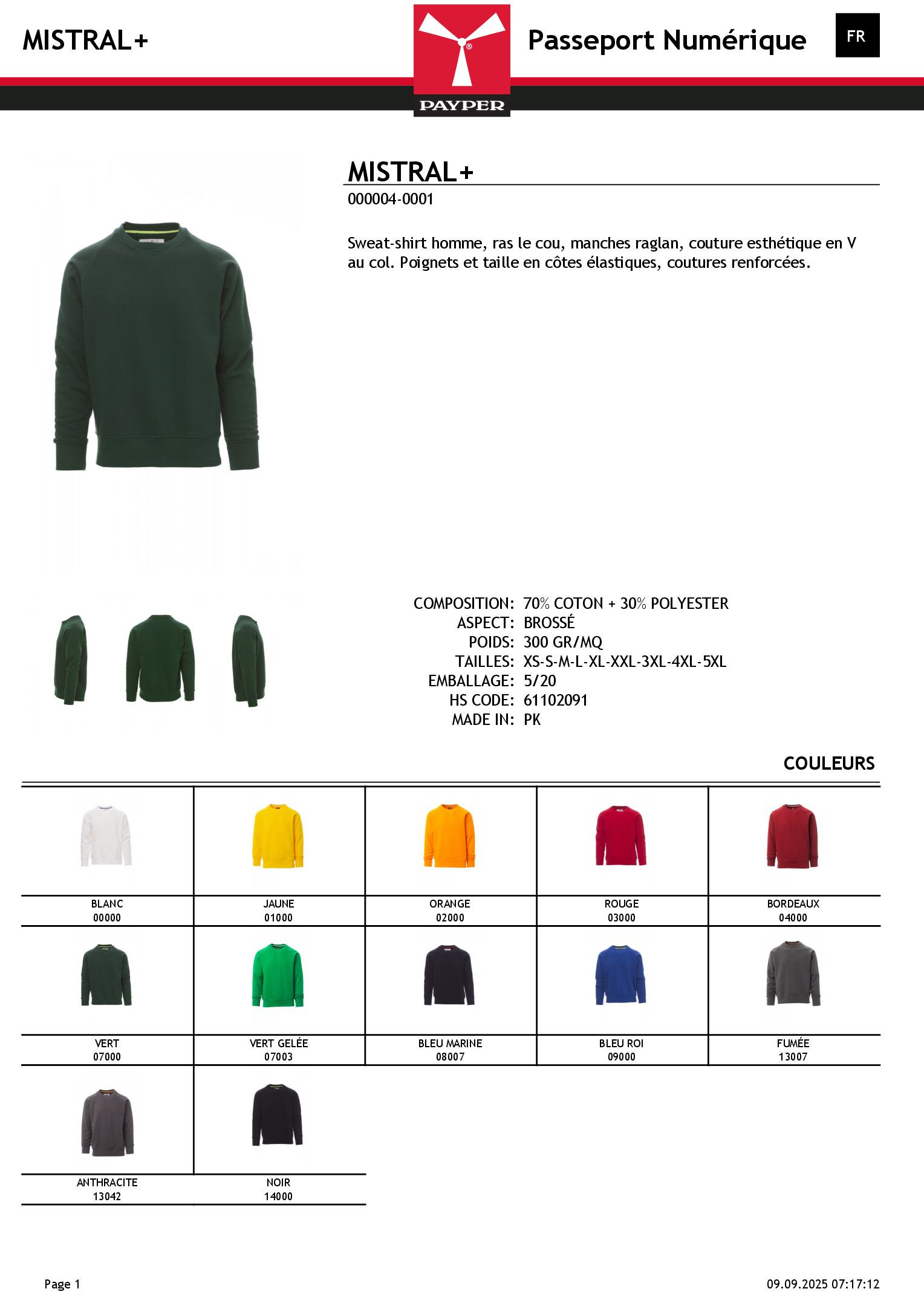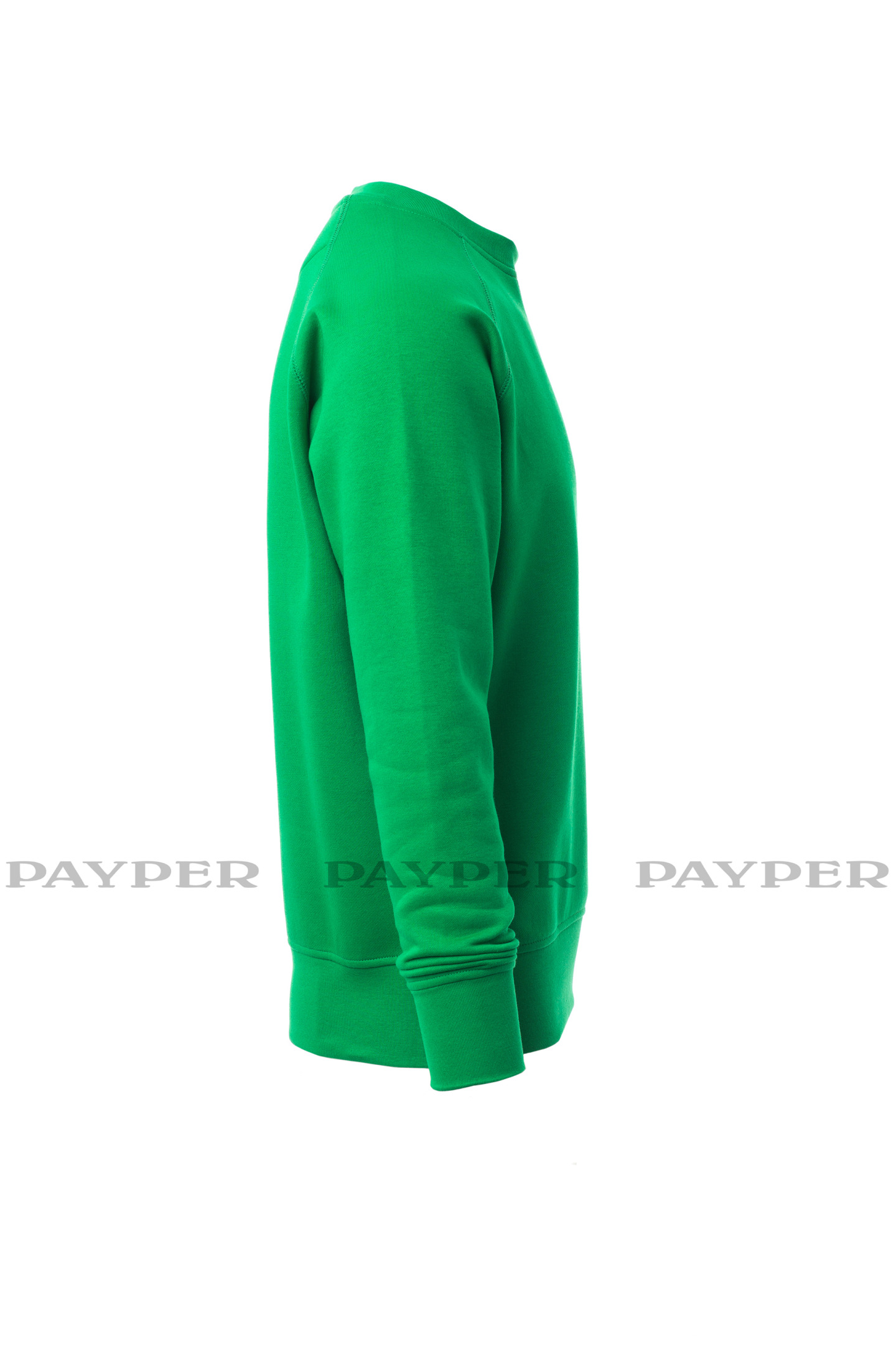 Sweat-shirt homme, ras le cou, manches raglan, couture esthétique en V au col. Poignets et taille en côtes élastiques, coutures renforcées.