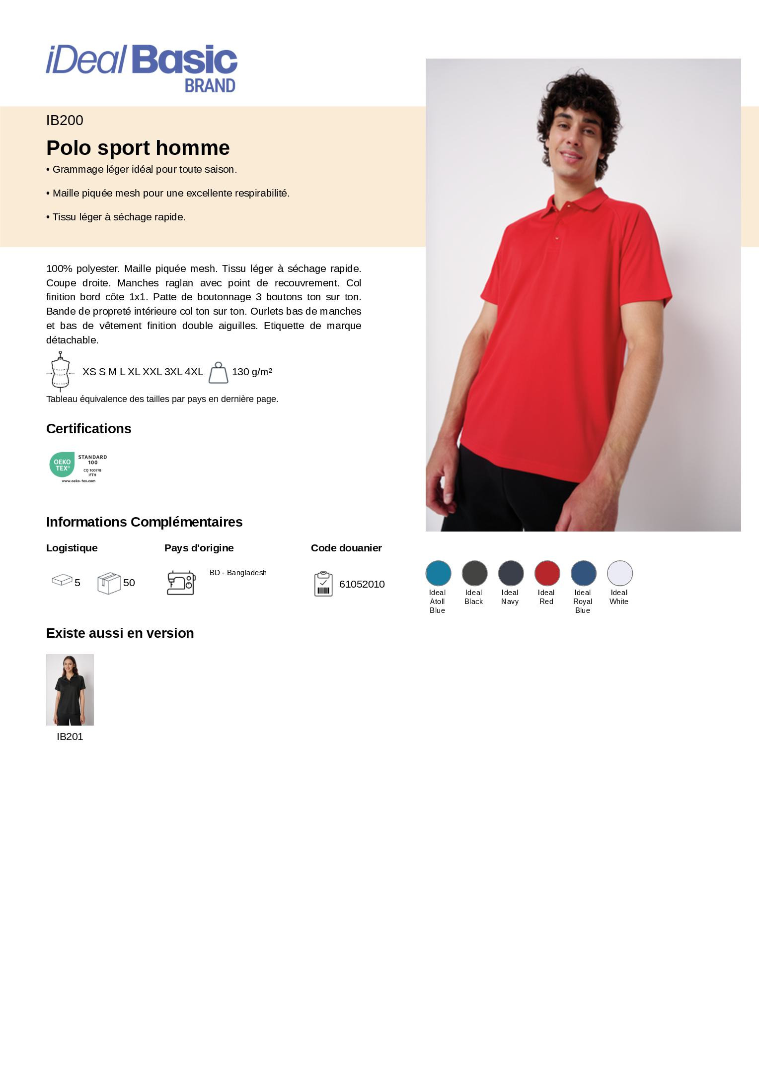 100% polyester. Maille piquée mesh. Tissu léger à séchage rapide. Coupe droite. Manches raglan avec point de recouvrement. Col finition bord côte 1x1. Patte de boutonnage 3 boutons ton sur ton. Bande de propreté intérieure col ton sur ton. Ourlets bas de manches et bas de vêtement finition double aiguilles. Etiquette de marque détachable.