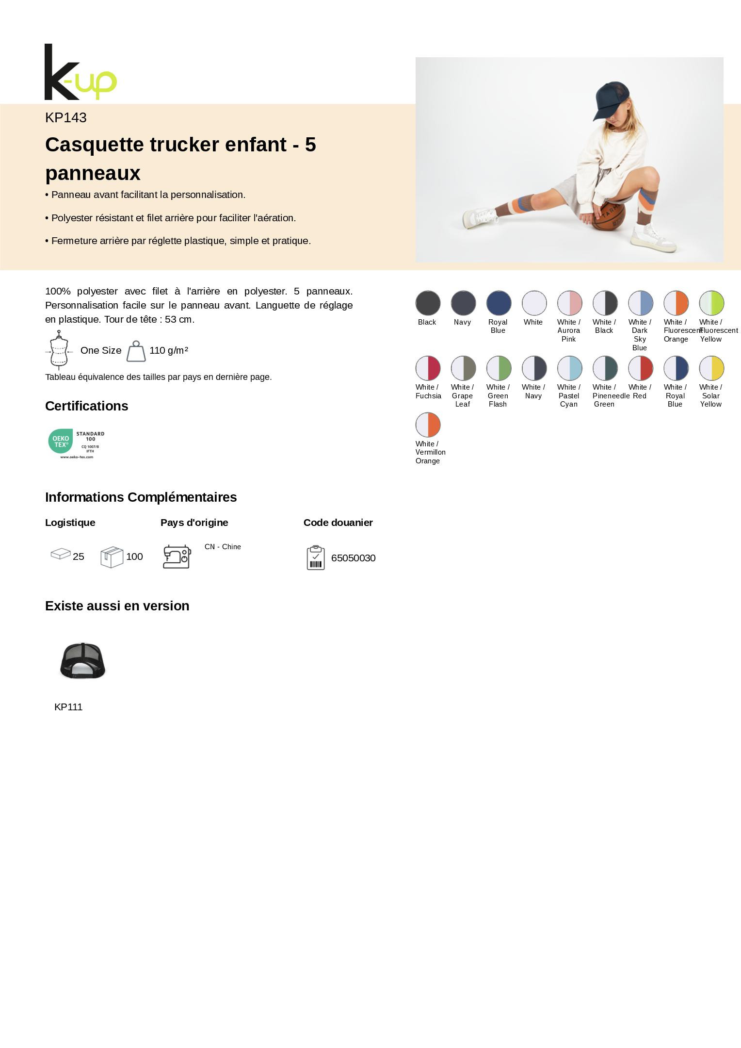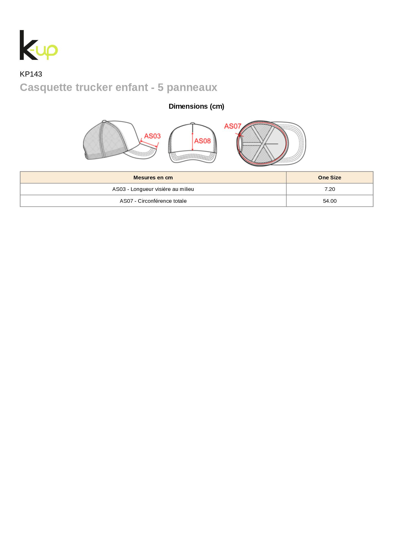 KP143 - Casquette trucker enfant - 5 panneaux