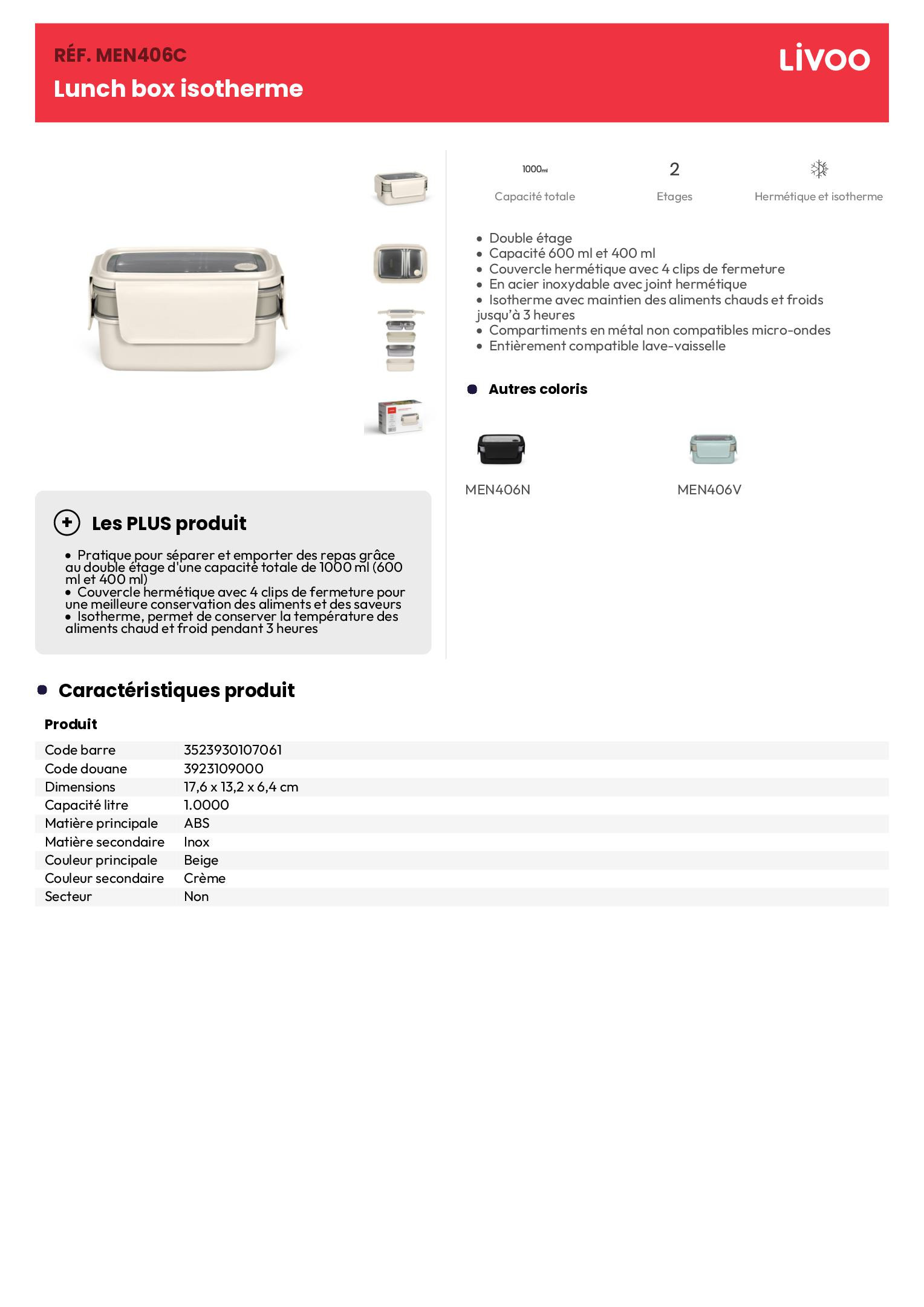 Isotherme avec maintien des aliments chauds et froids jusqu’à 3 heures