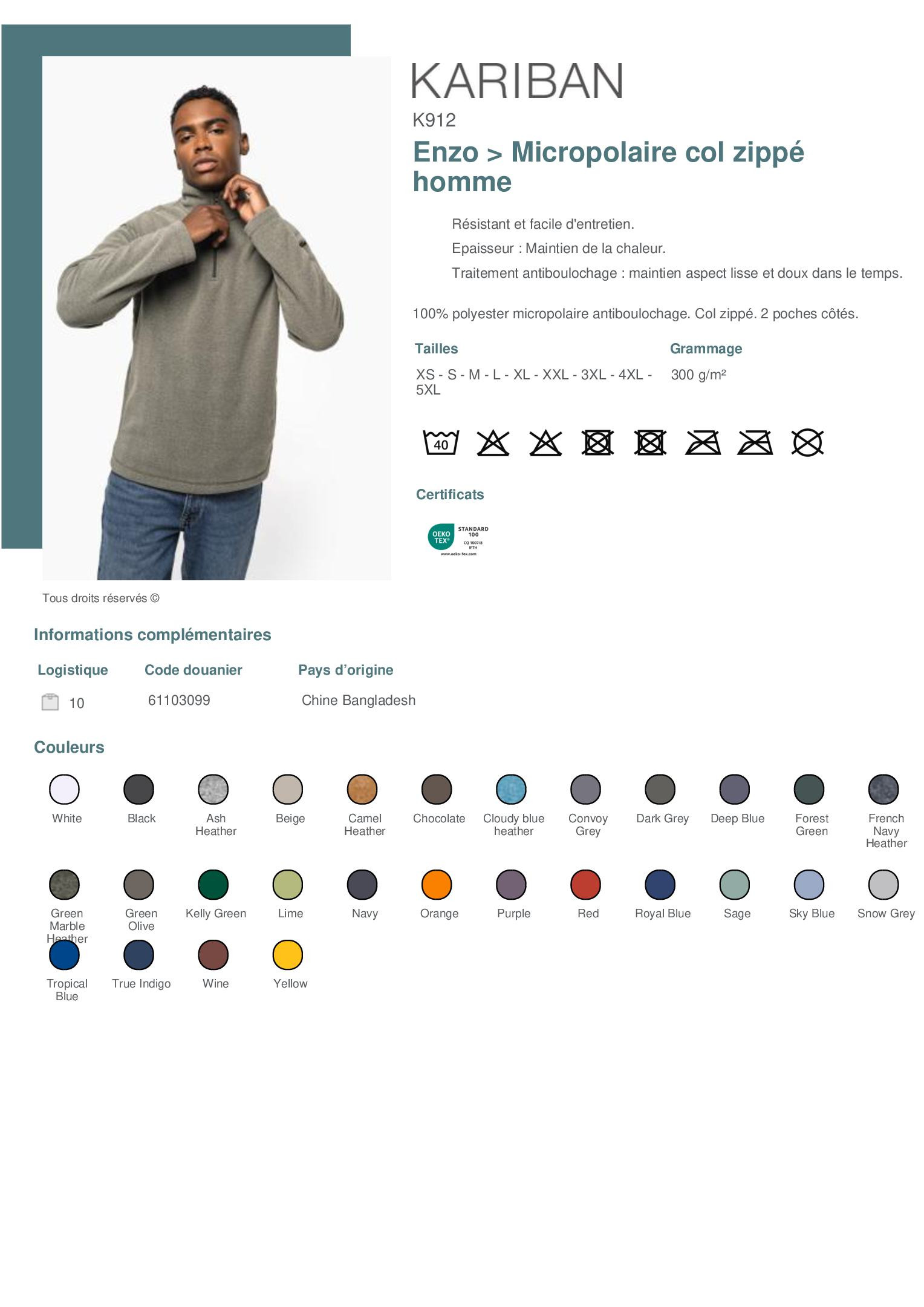 Offrez à votre équipe ou à vos clients le confort thermique idéal avec cette micropolaire homme à col zippé 300 g/m², conçue pour allier chaleur, résistance et durabilité.