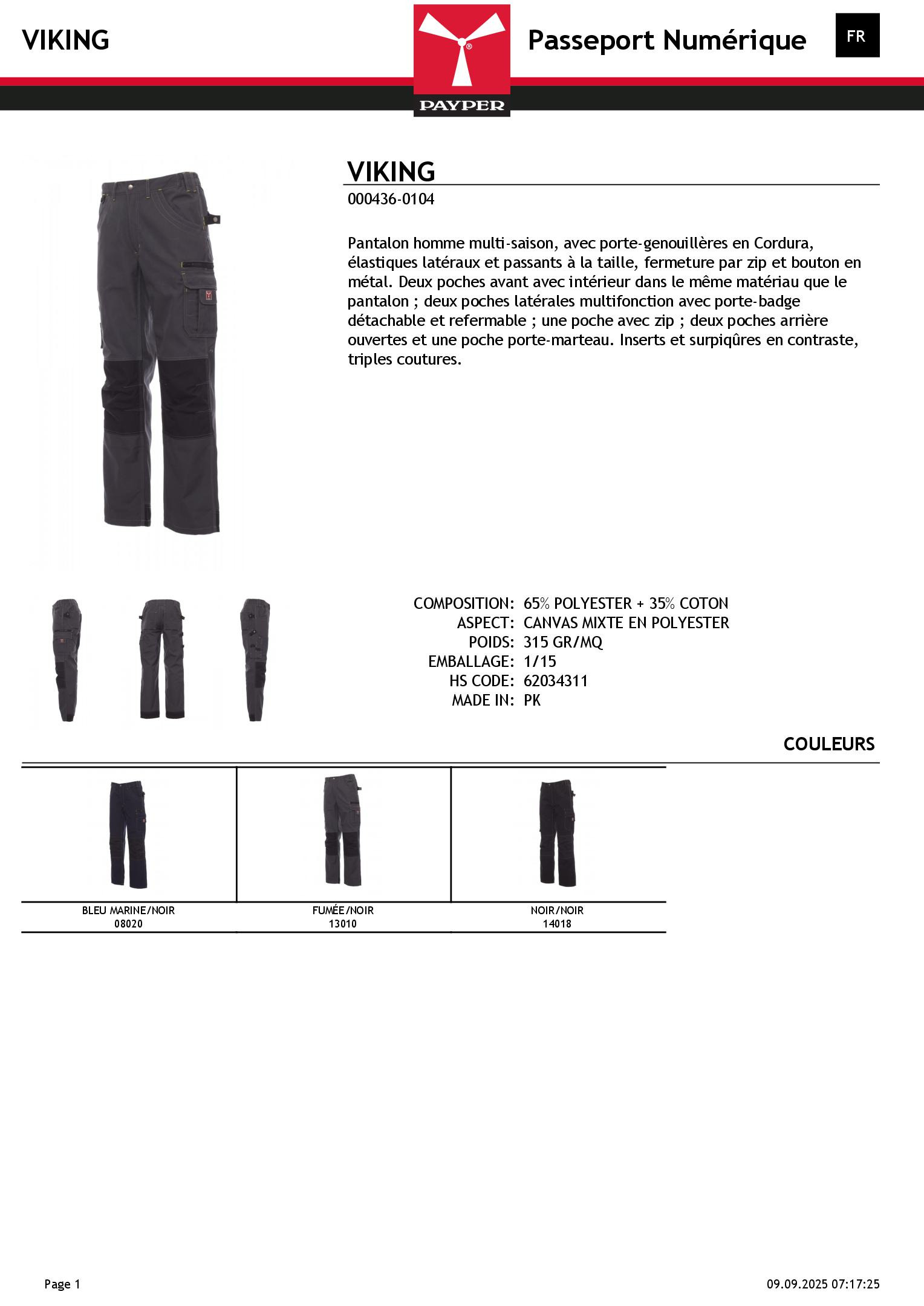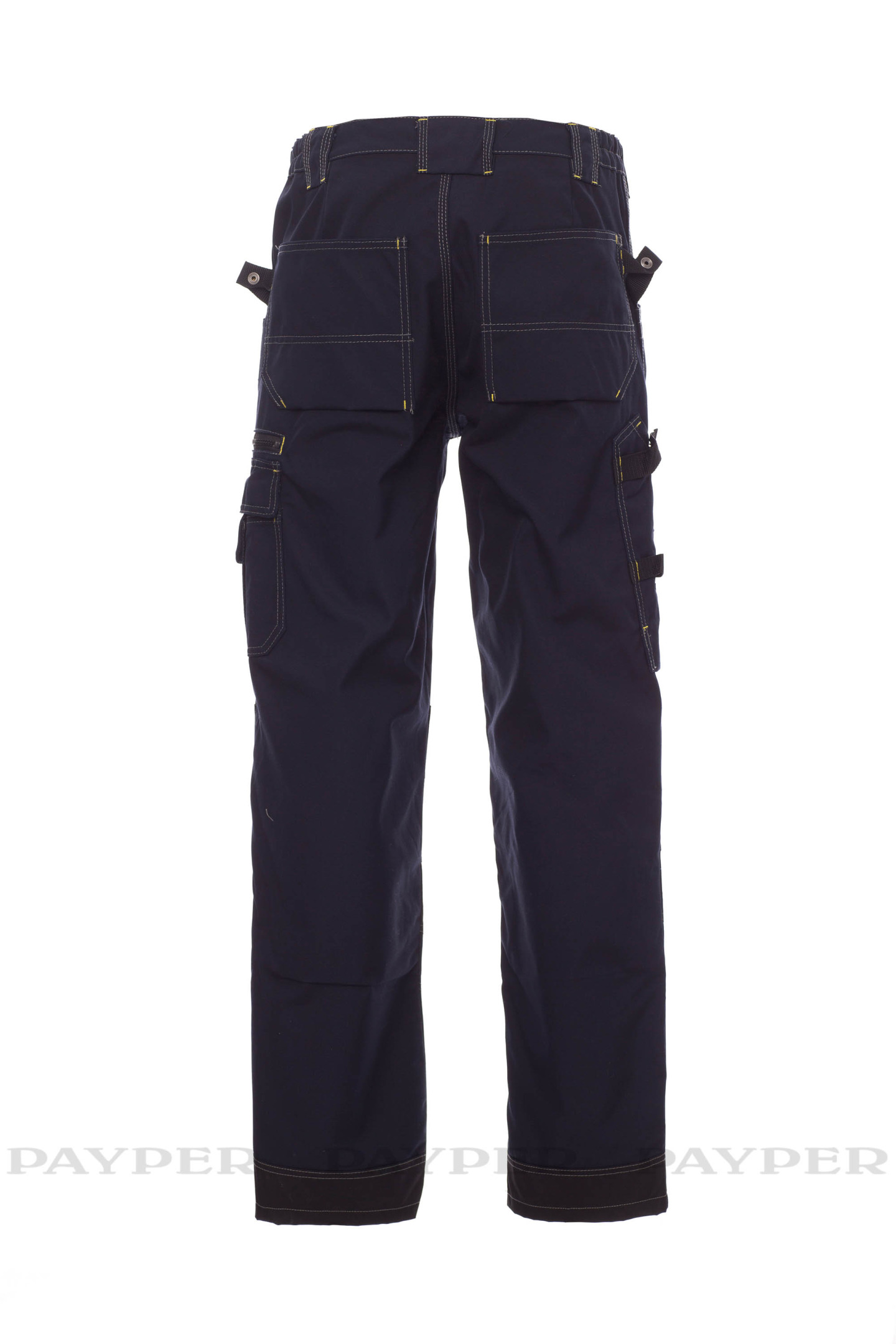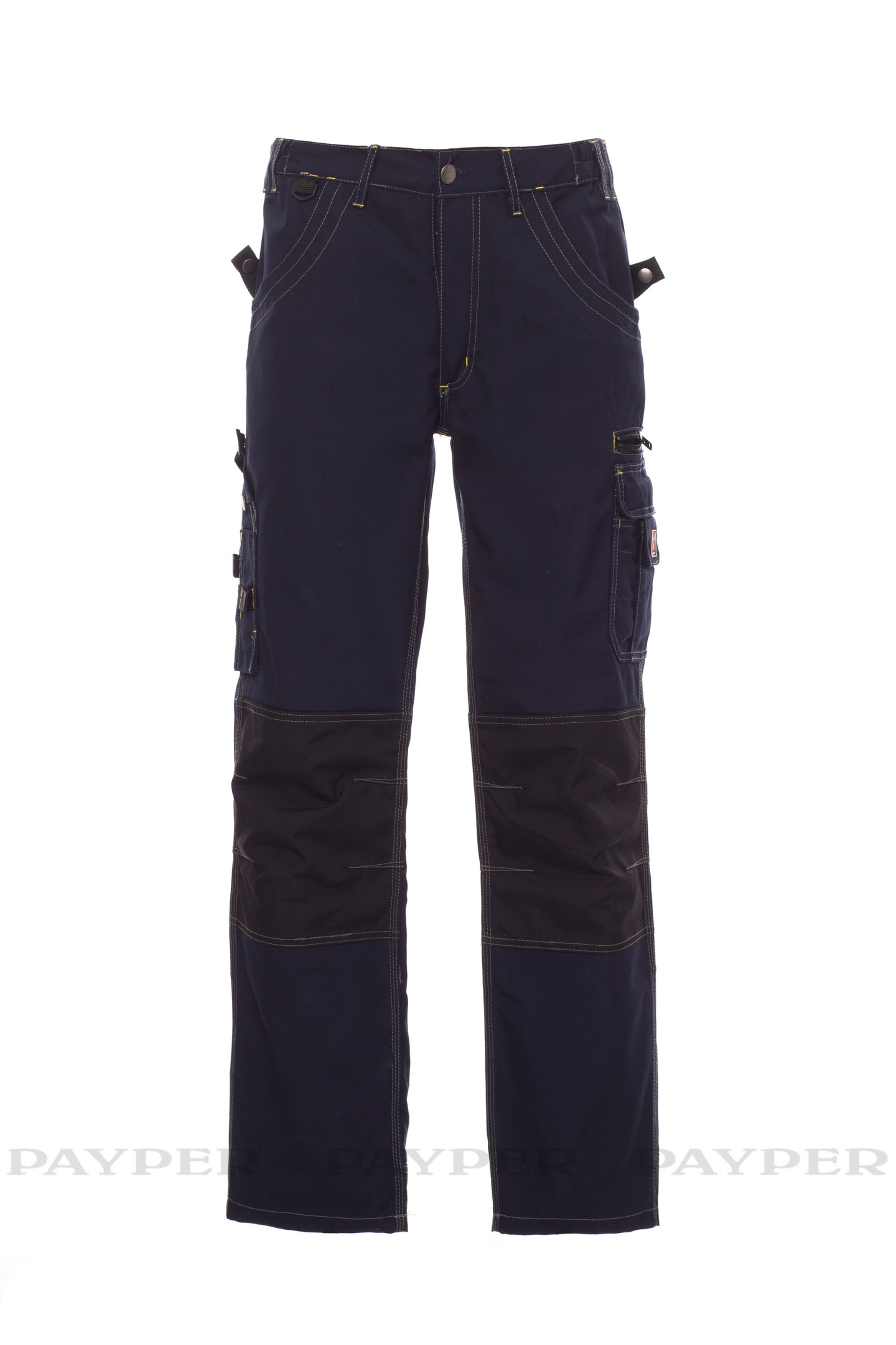 Pantalon homme multi-saison, avec porte-genouillères en Cordura, élastiques latéraux et passants à la taille, fermeture par zip et bouton en métal. Deux poches avant avec intérieur dans le même matériau que le pantalon ; deux poches latérales multifonction avec porte-badge détachable et refermable ; une poche avec zip ; deux poches arrière ouvertes et une poche porte-marteau. Inserts et surpiqûres en contraste, triples coutures.