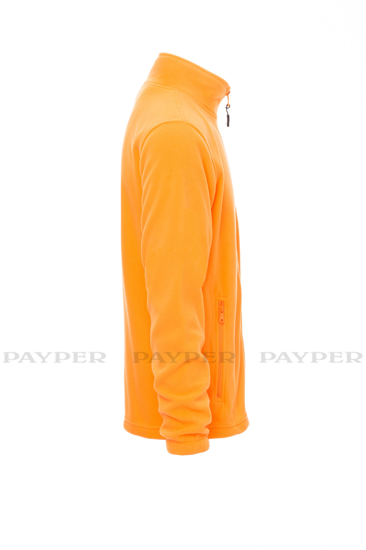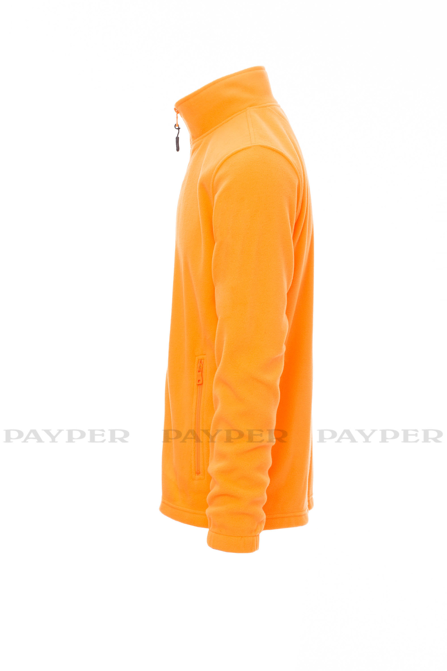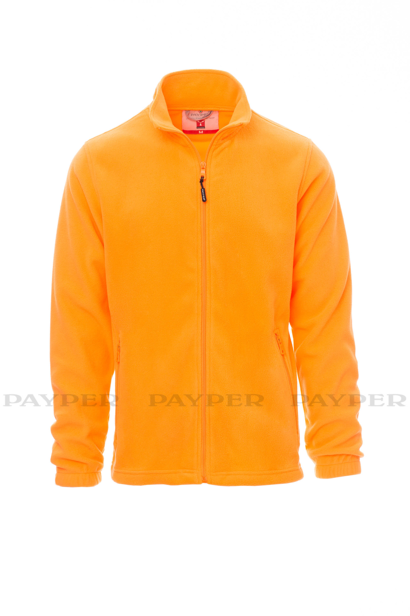 Veste polaire à zip intégral en nylon curseur simple, manches montées, élastiques serre-poignet, deux poches avec zips couverts, coutures renforcées, bas droit.
