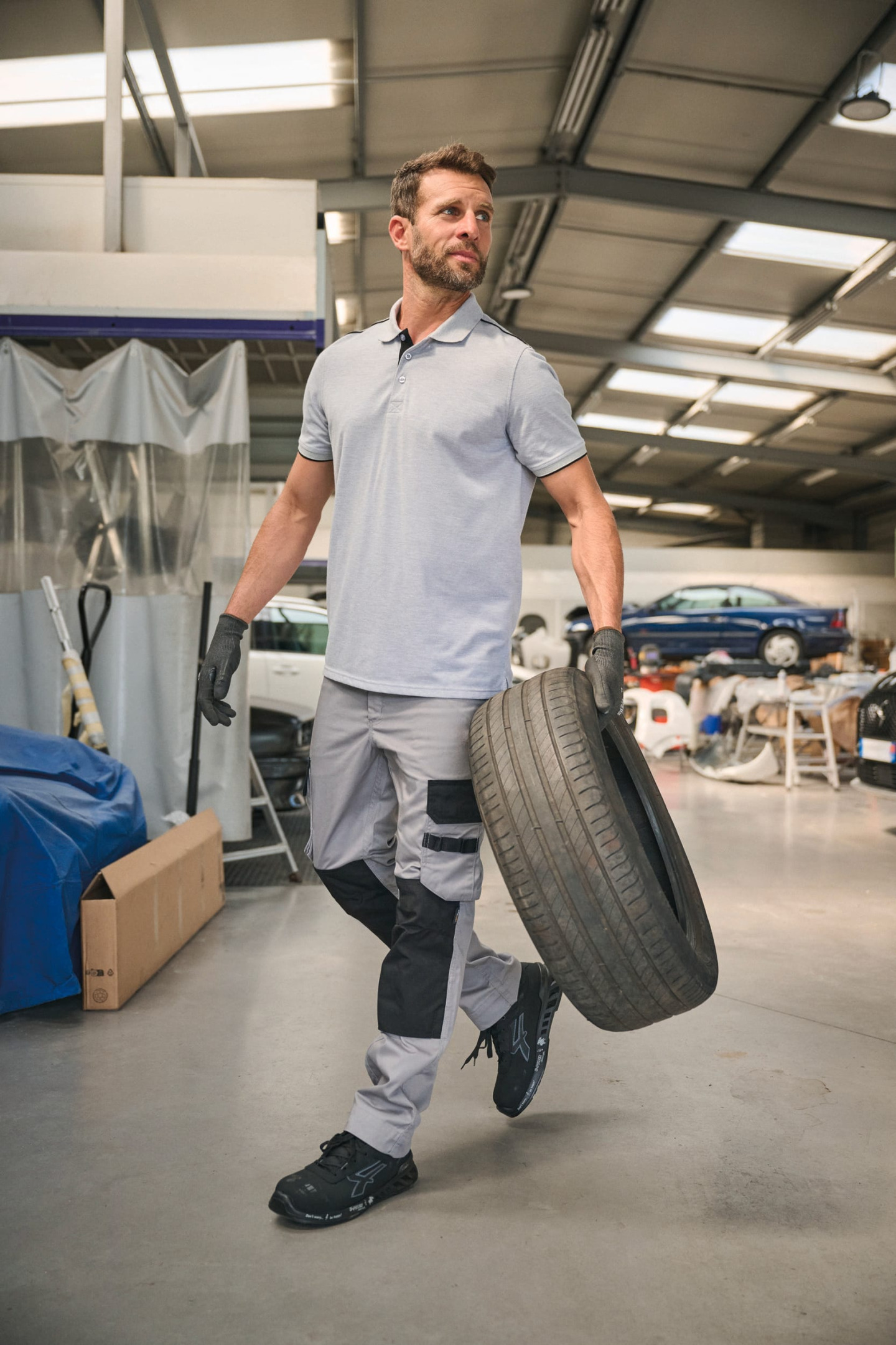 65% polyester / 35% coton. Coton peigné. Maille piquée. Lavable à 60°C. Traitement antiboulochage. Patte 3 boutons avec bande intérieure contrastée. Col en bord-côte avec bande de propreté. Passepoil contrasté intérieur col et épaules. Finitions bord-côte avec liseré contrasté au bas de manches. Fentes latérales avec bande chevron contrastée pour plus de confort. Finition double aiguille au bas de vêtement. Idéal pour une utilisation quotidienne.