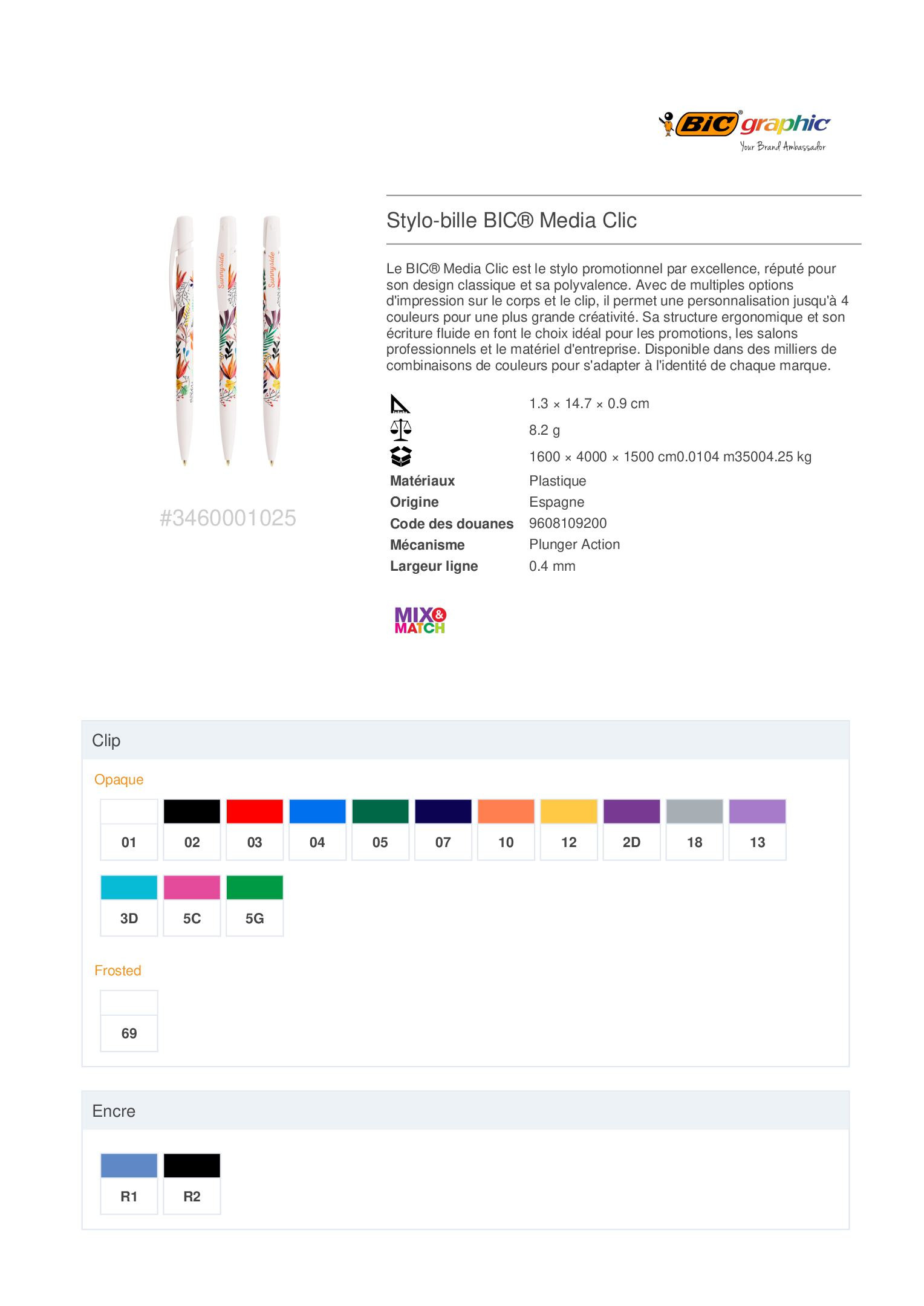 Couleur du corps à définir selon nuancierCouleur du clip à définir selon nuancierCouleur du bouton à définir selon nuancierCouleur de l'encre