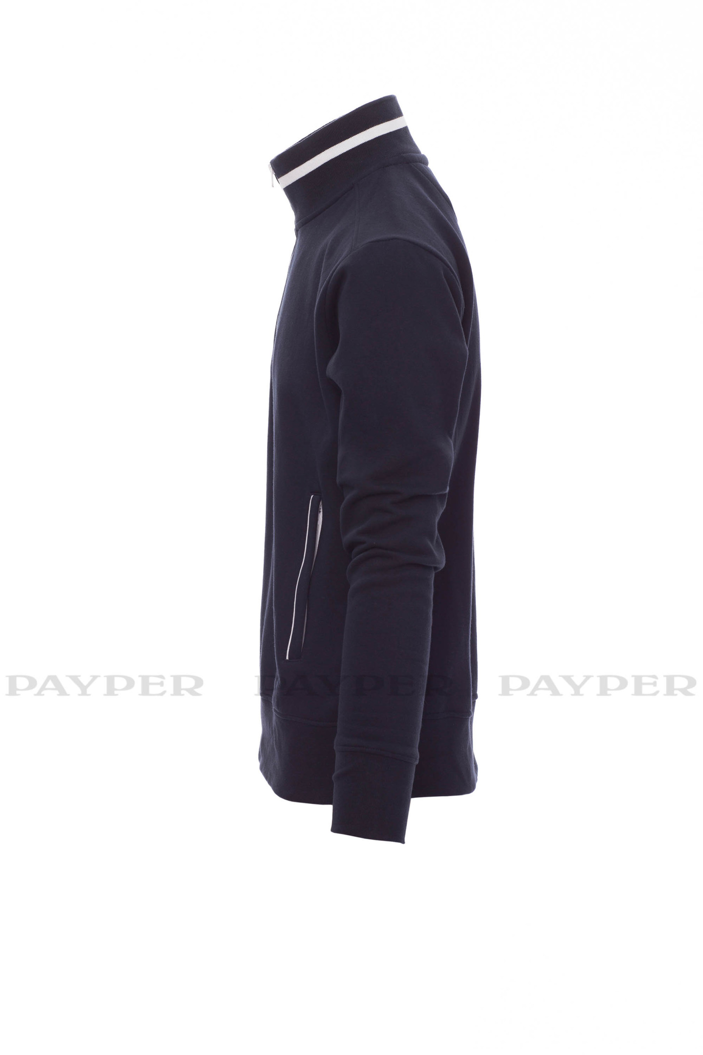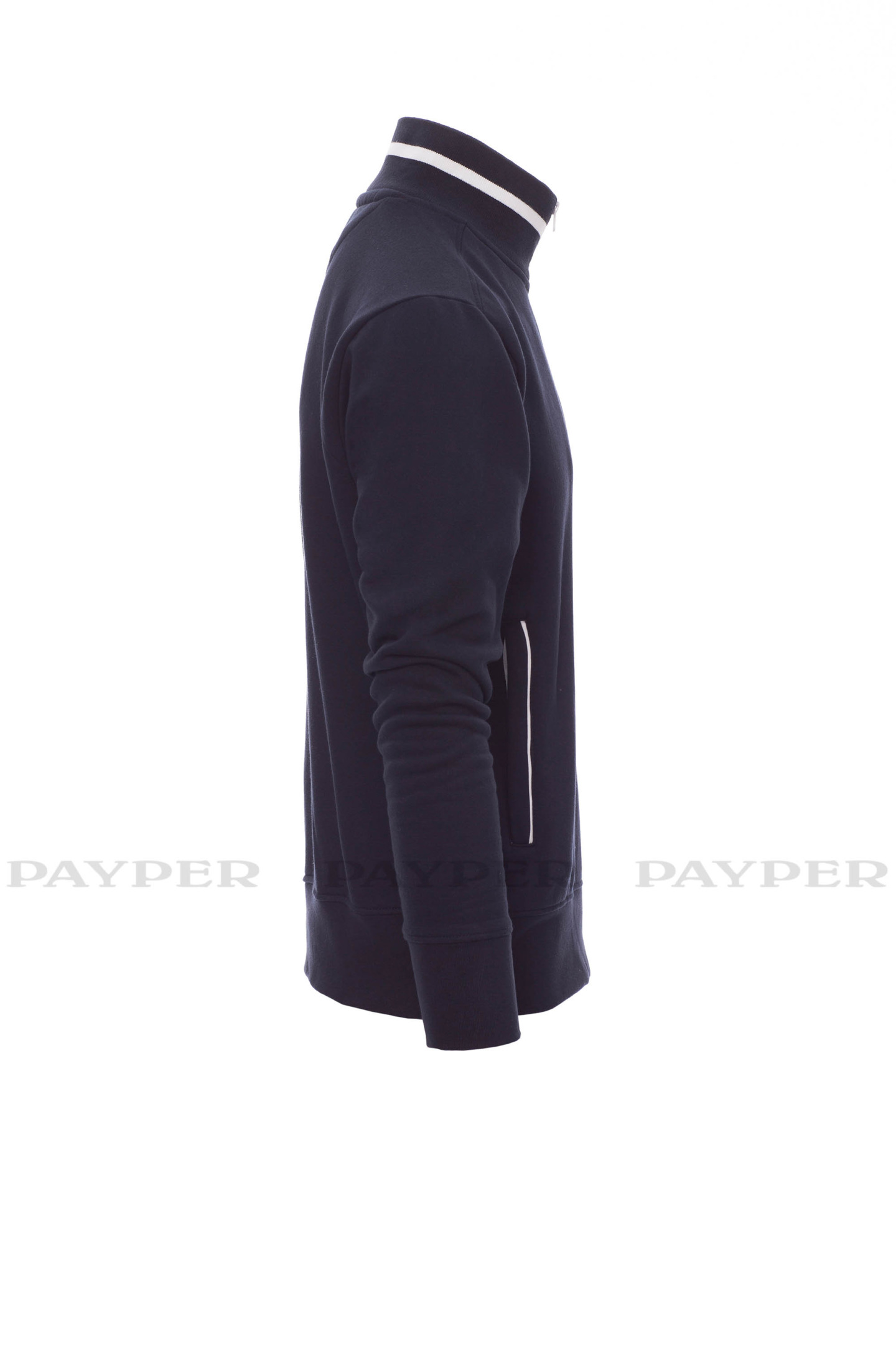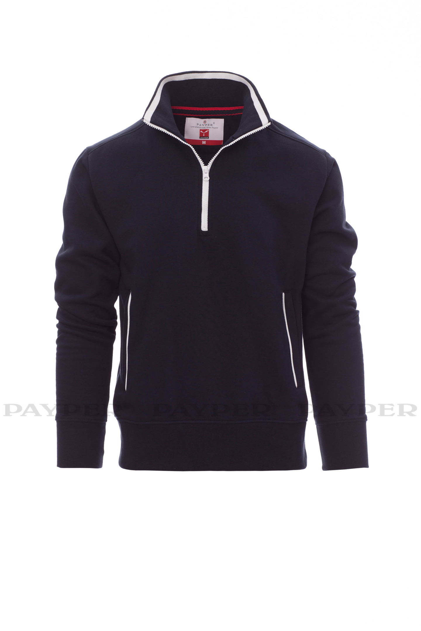 Sweat-shirt homme, à demi-fermeture éclair en plastique de couleur en contraste, curseur en métal, profil en contraste dans le col et sur poches latérales