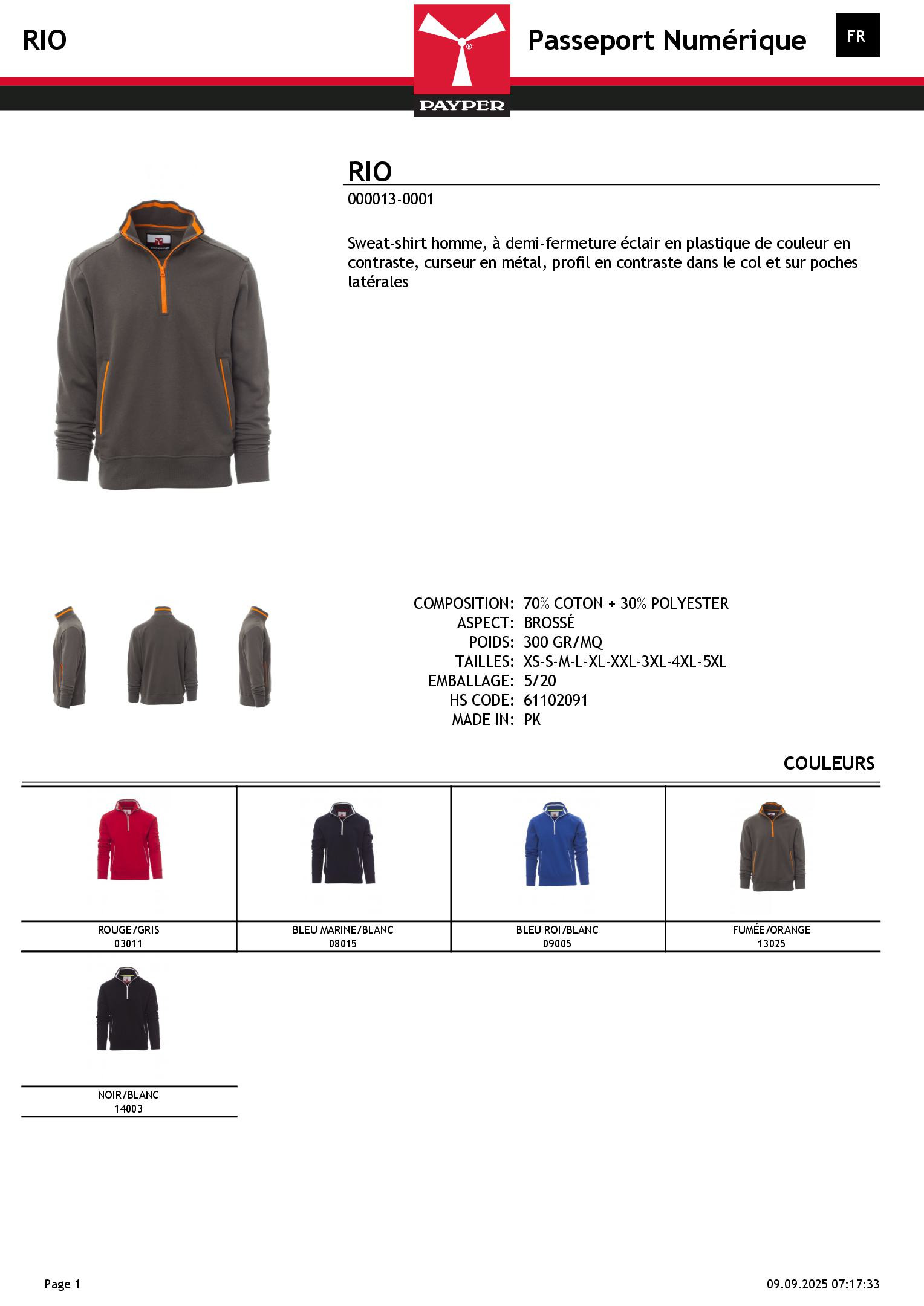 Couleur à définir (voir fiche technique)Tailles à définir (voir fiche technique)Marquage textile