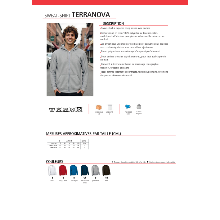 Tailles à définir (voir fiche technique)