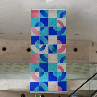 Gagnez en visibilité lors de vos salons, événements ou en point de vente avec une enseigne suspendue textile personnalisée
